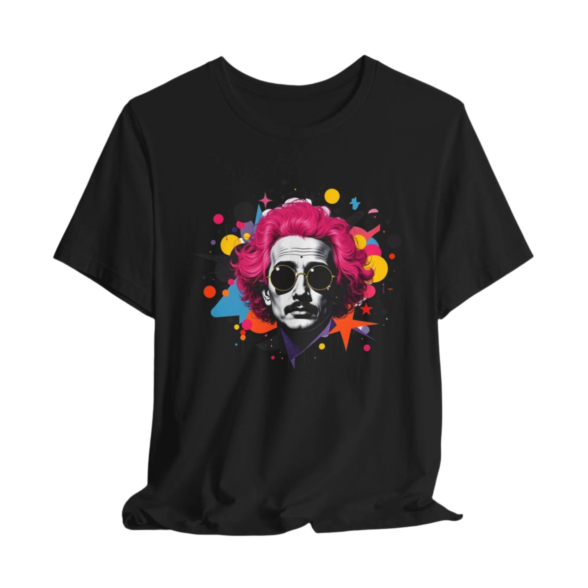 Einstein like you’ve never seen him — hair electrified, shades on, and ready to deface the equation of cool. This is intellect unchained, pure chaos in color.