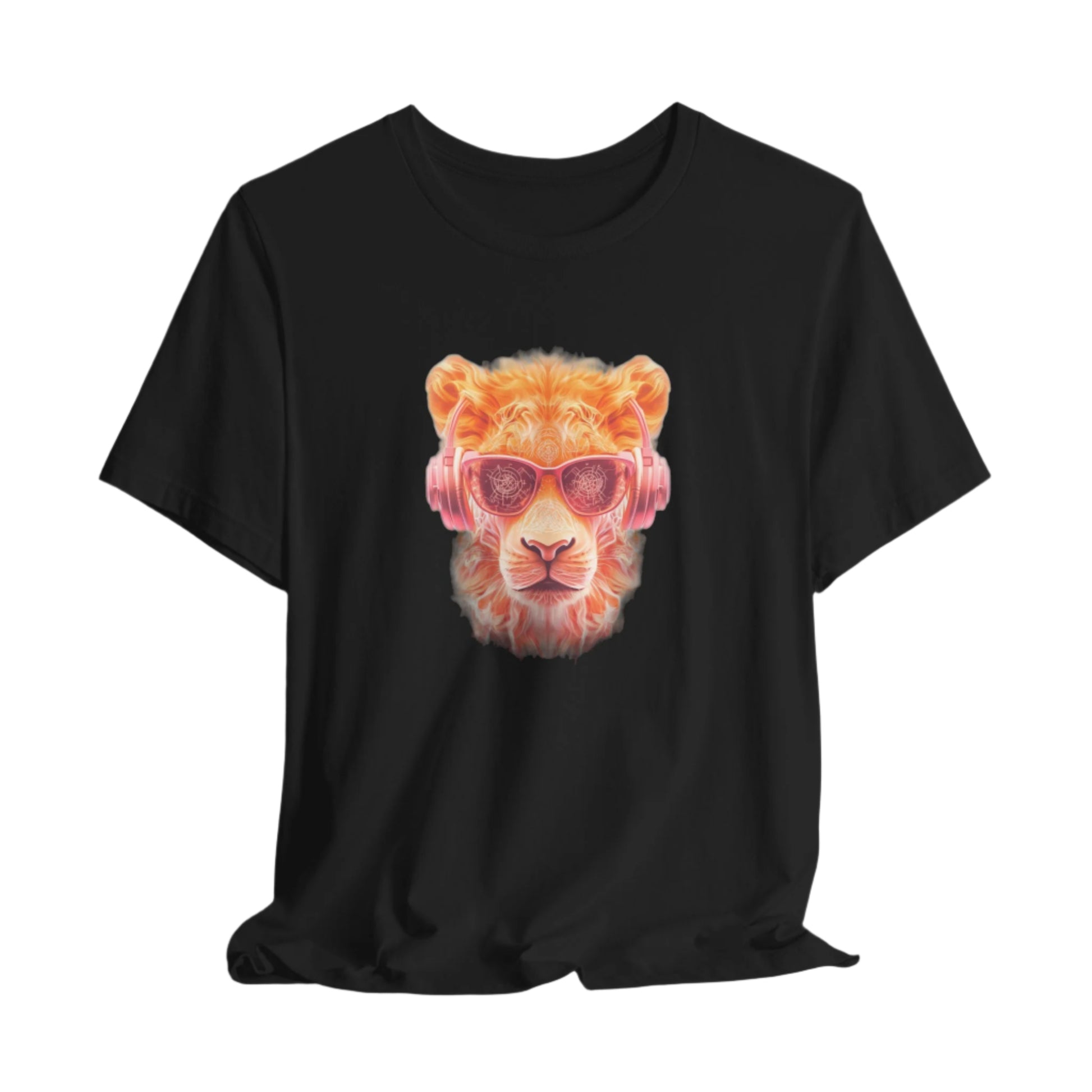 This lion burns with a mythic glow, its mane like fire and headphones like a warrior's crown. The intricate sigil on its forehead is part protection, part pulse.