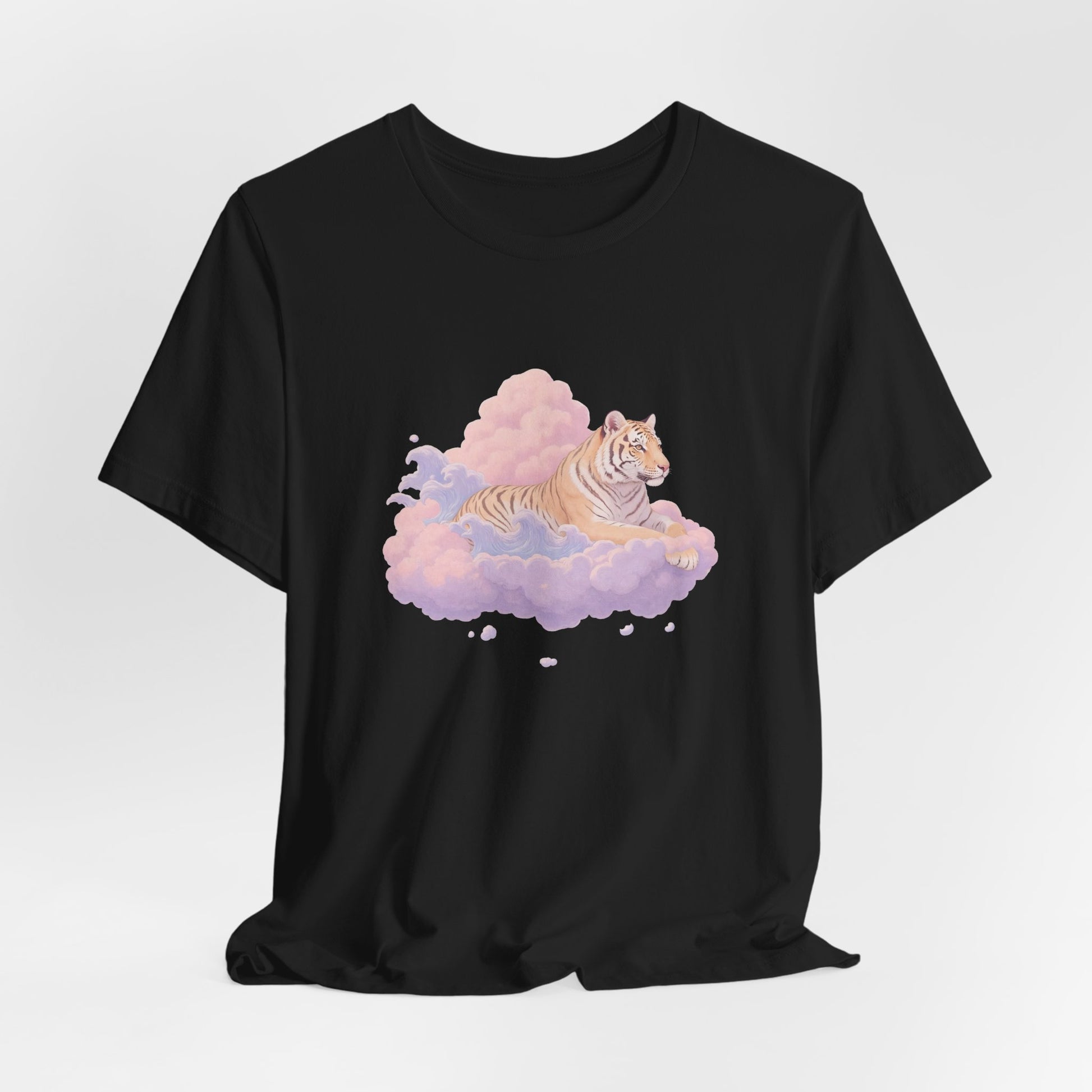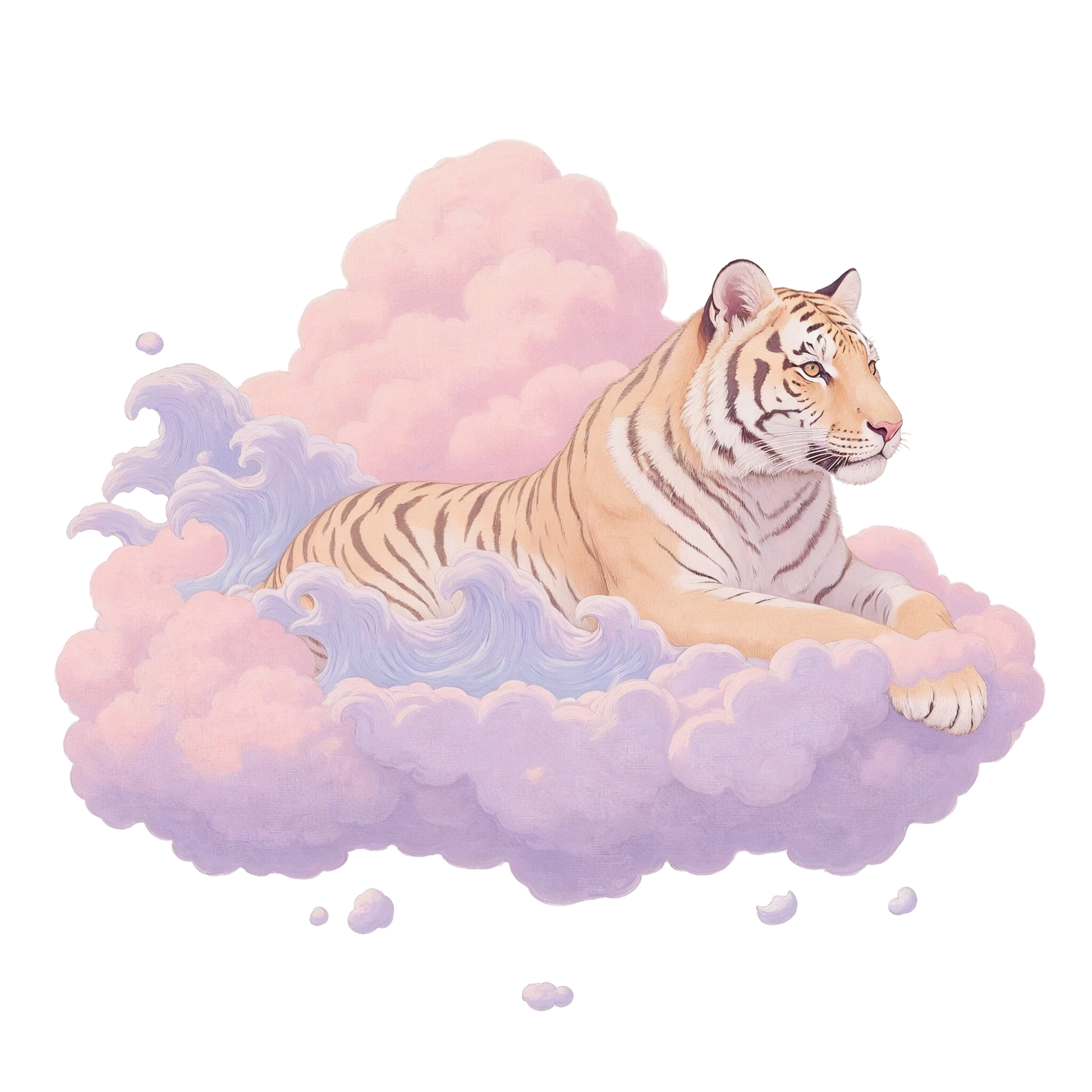 This serene white tiger lounges on pastel clouds and rolling dreamwaves, blending untamed strength with tranquil beauty. A surreal mix of fierceness and flow, it’s a design for those who carry calm in the storm.