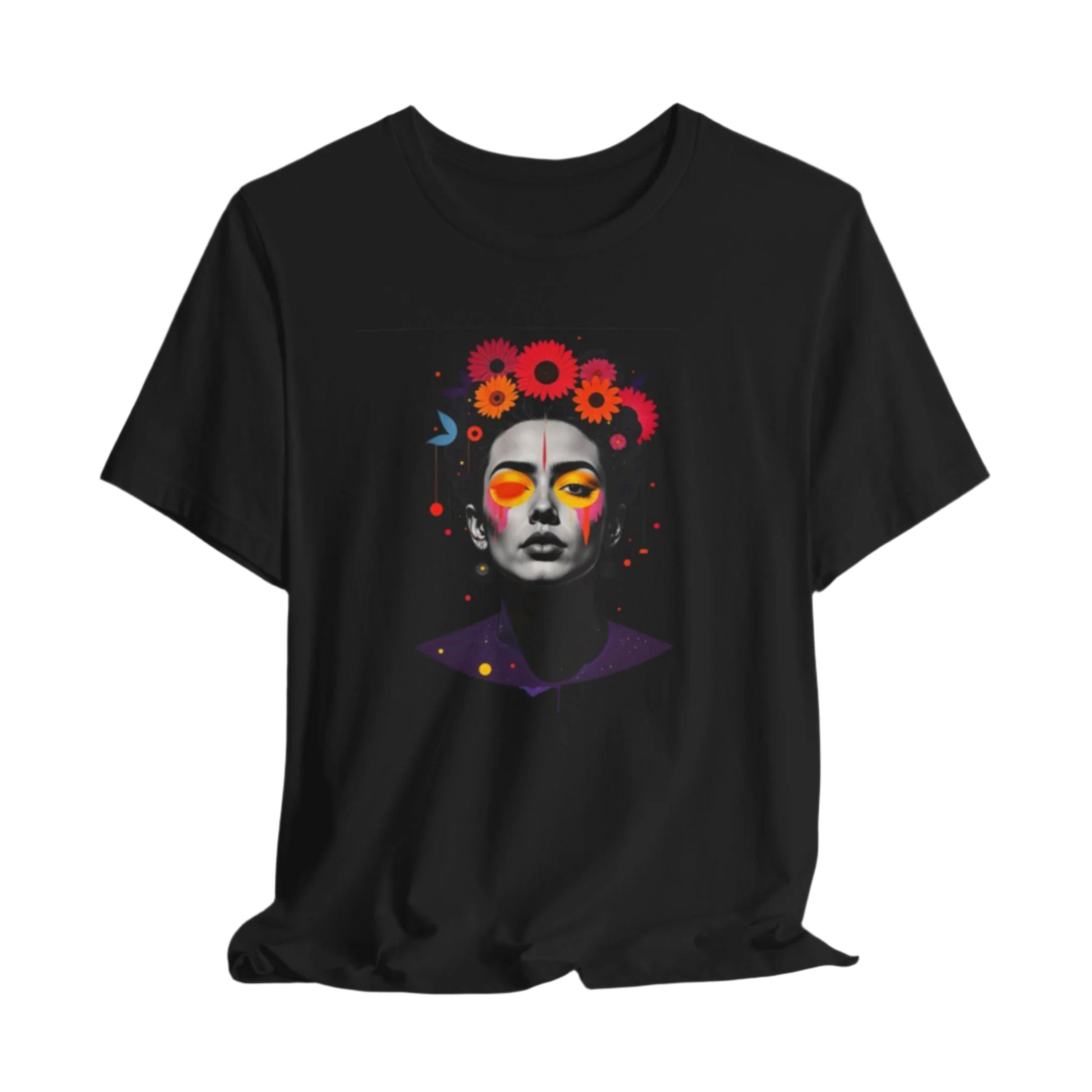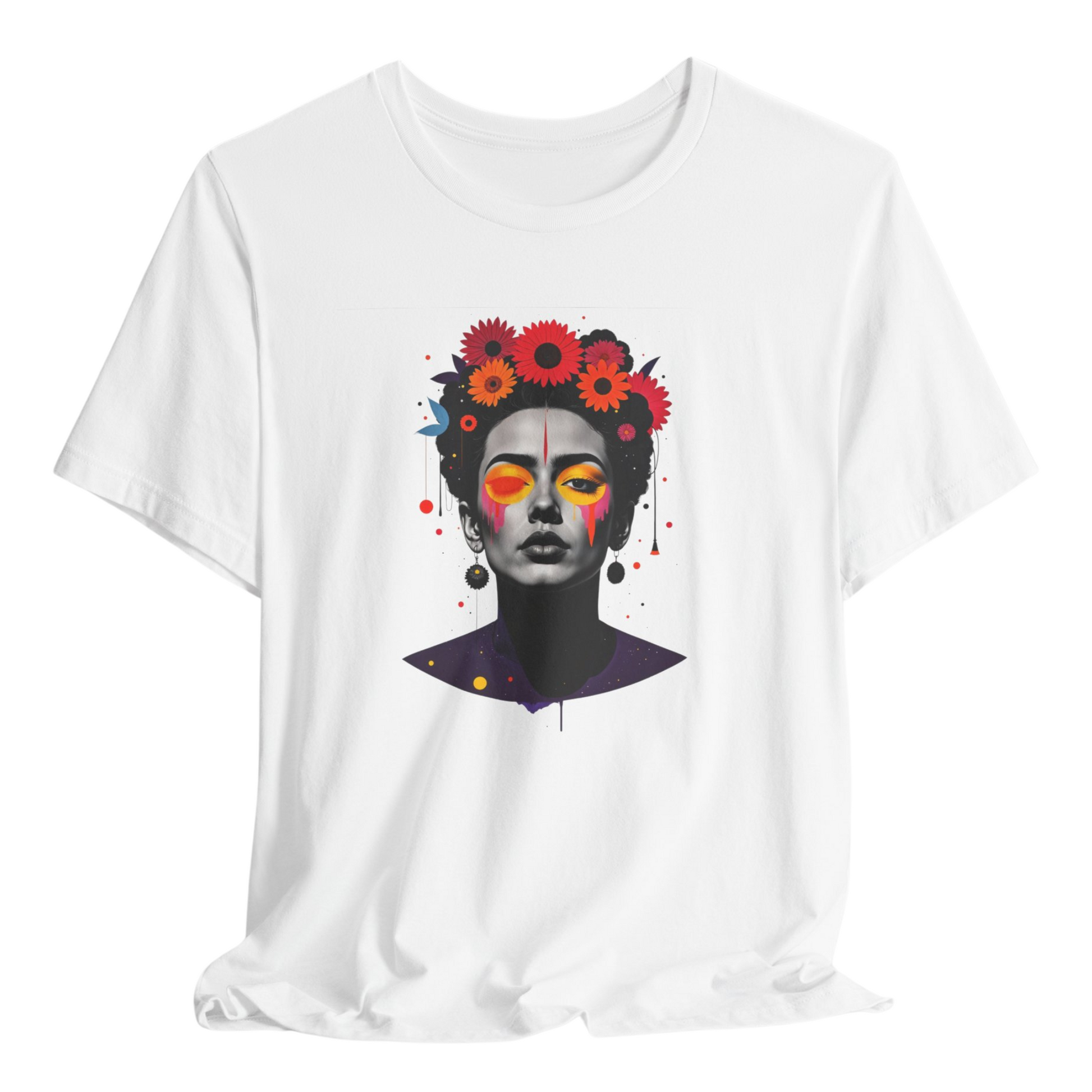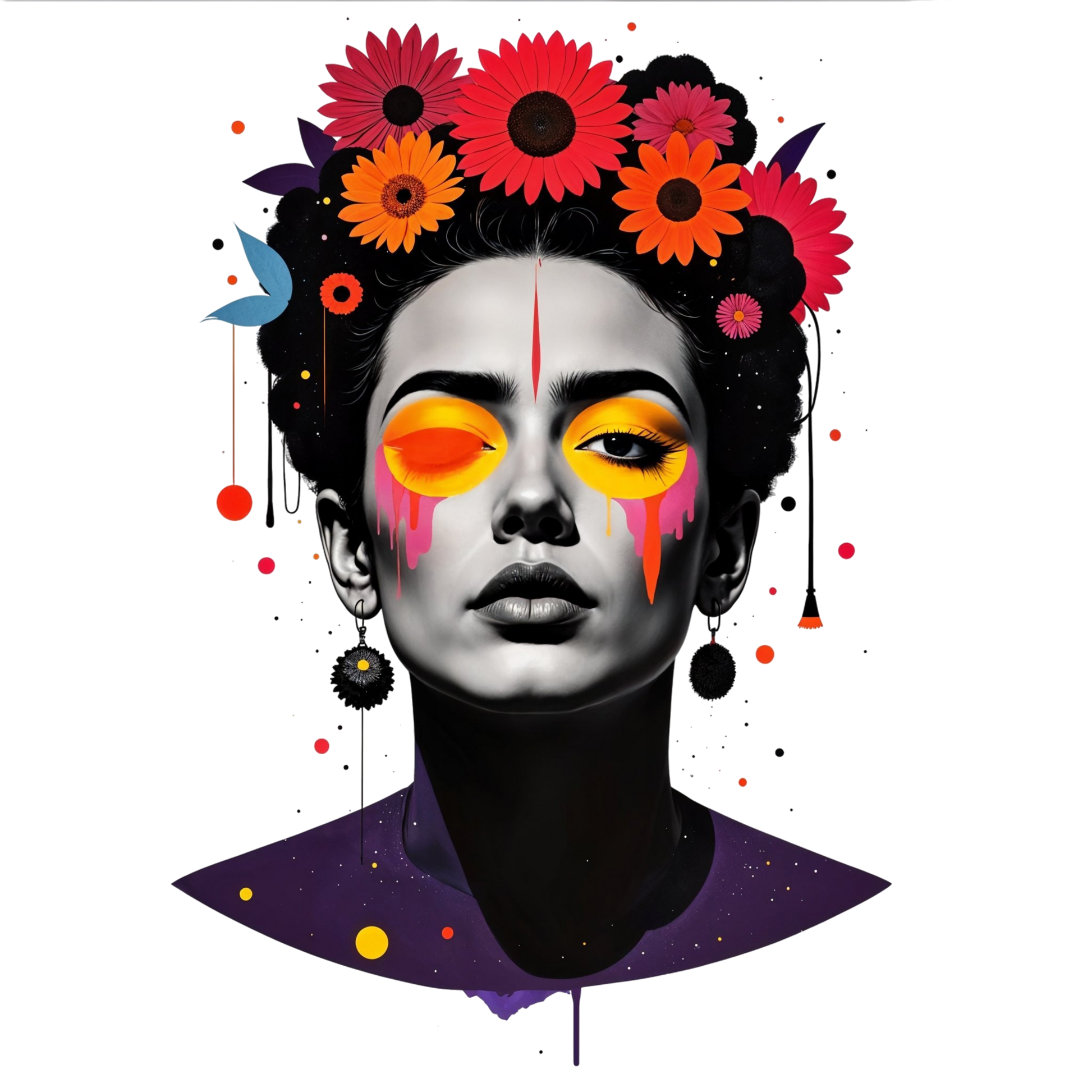 An untamed spirit draped in blossoms and defiance, where strength and softness collide. This piece is a tribute to resilience dressed in color.