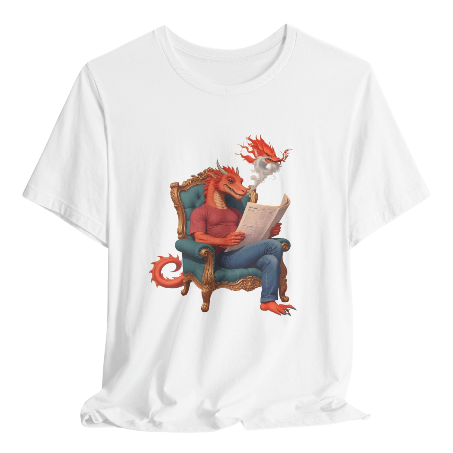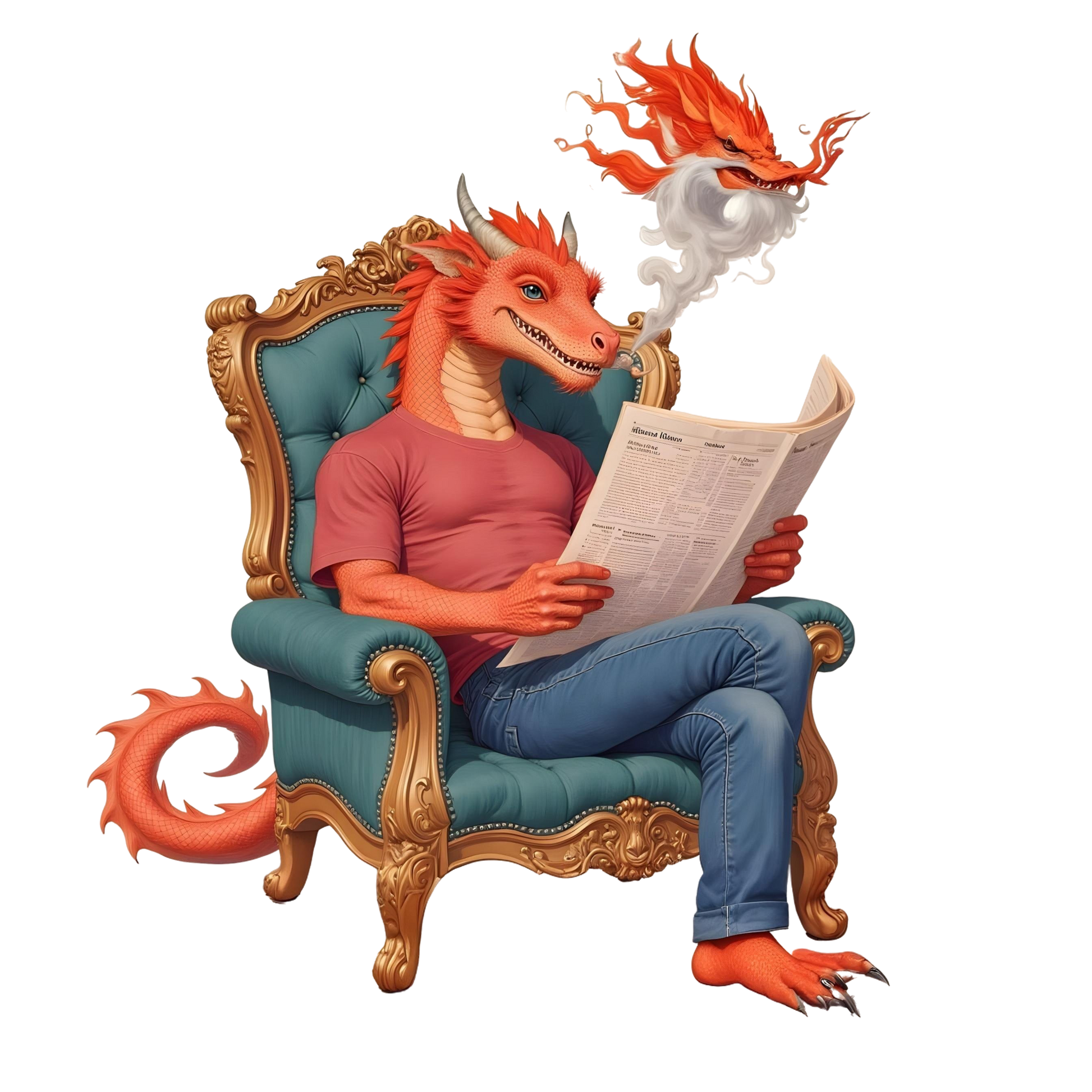 “Hot Takes Only” is a surreal snapshot of a chill dragon sipping news and exhaling truth — or possibly another headline.