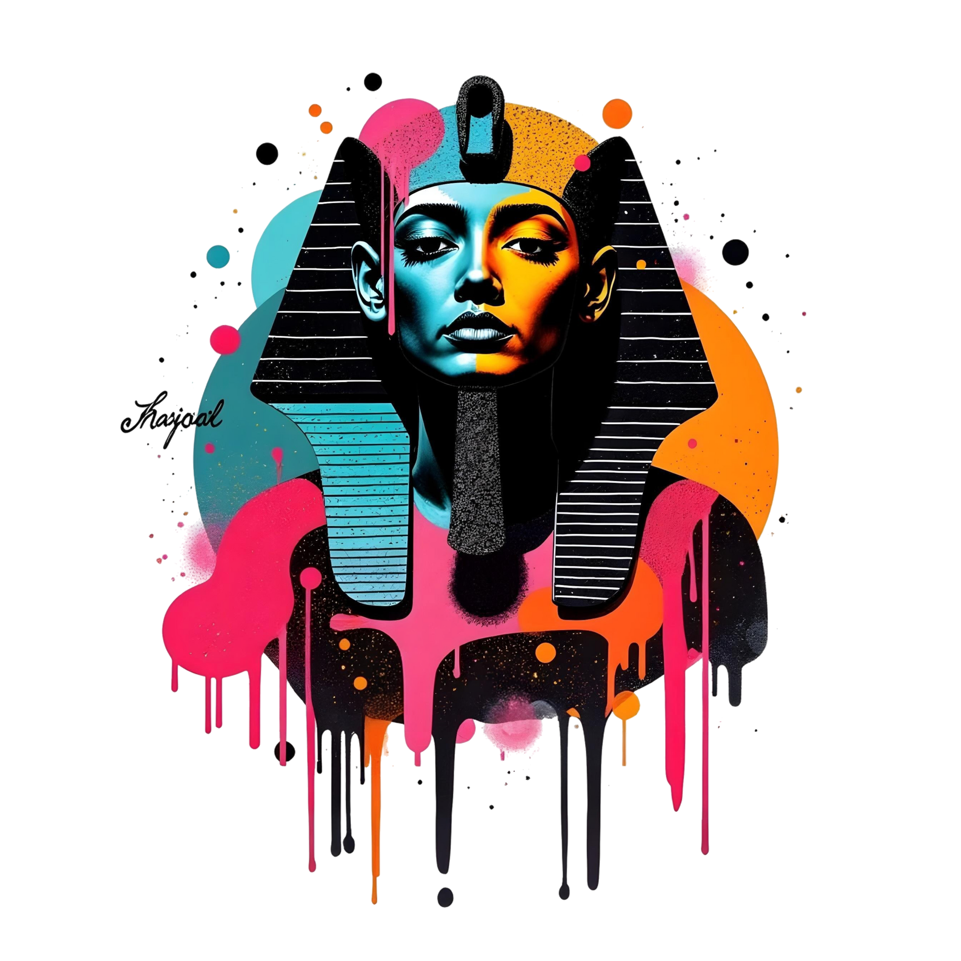 A fierce collision of pharaoh power and street art swagger, this design drips with rebellion and regality.